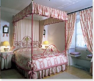Num quarto romântico, a cama é sempre rainha do romance, com destaque para estruturas em ferro ou então para camas de madeira imponentes com quatro colunas e/ou cabeceiras luxuosamente forradas com tecidos elegantes. O que não pode mesmo faltar neste ambiente, é um dossel, tule ou cortina suspensa sobre a cama ou a funcionar simplesmente como adereço decorativo. Os tradicionais guarda-roupas são outra peça chave.